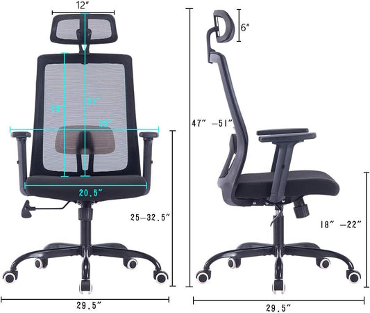 Black Office Chair, High Back Mesh Desk Chair, Ergonomic Computer Chair for Office.