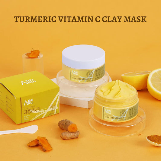ANAIRUI Turmeric Vitamin C Clay Mask for Dark Spots, Vitamin C Clay Facial Mask for Blackheads, Pores, Wrinkles, Fine Lines, Hydrating, Clarifying, Cleansing, 4.23 OZ