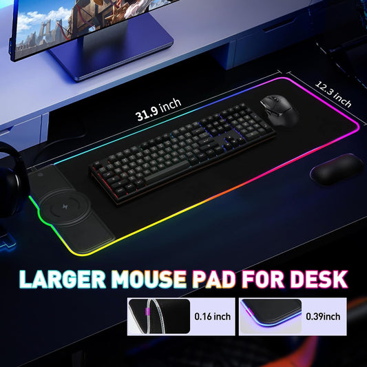 Gaming Mouse Pad with Wireless Charging,25W PD Fast Charging RGB Mousepad Gaming Accessories for Desk,Upgrade Your Gaming and Office Setup with Large Desk Pad (Black-With 25W Pd Charger)