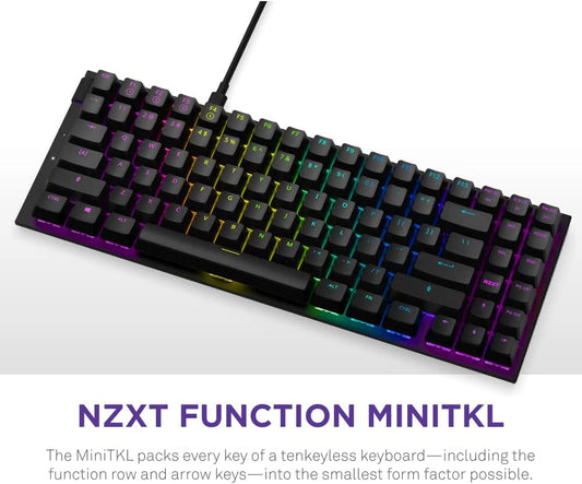 Function Minitkl - Compact Tenkeyless Gaming Keyboard – Gateron Red Mechanical Switches: Linear, Fast, and Quiet – Hot-Swappable – RGB Backlit – Aluminum Top Plate – Sound Dampening Foam – Black