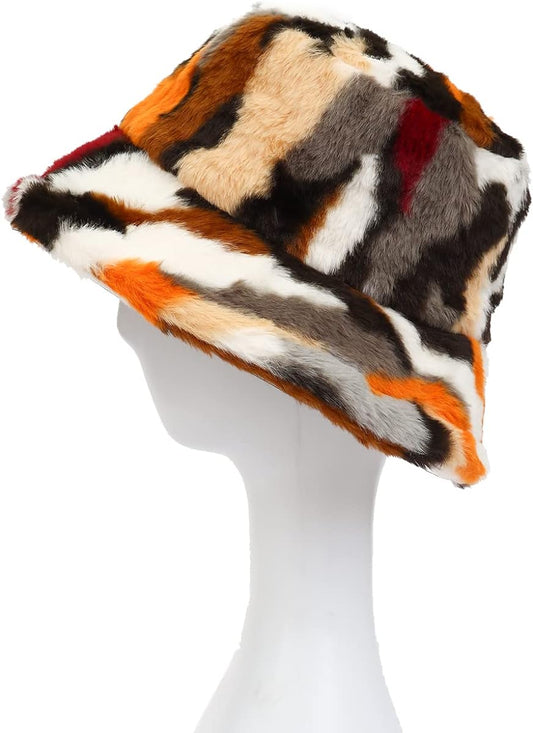 Fuzzy Bucket Hat for Women Winter, Colorful, One size