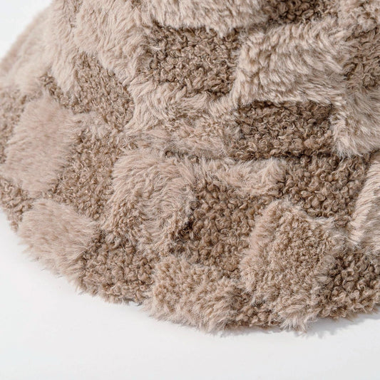 Plush Fisherman Hat for Women Fuzzy Chessboard Bucket Hat Wide Brim Fluffy Warm Cap for Fall Winter Gift 2023