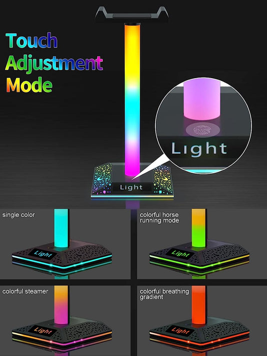 RGB Headset Stand Desk Accessories, Headphone Holder with 1 Type-C Port and 1 USB Port, Headphone Stand with 10 Light Modes and Non-Slip Rubber, Best Gift for Husband, Kids, Boyfriend