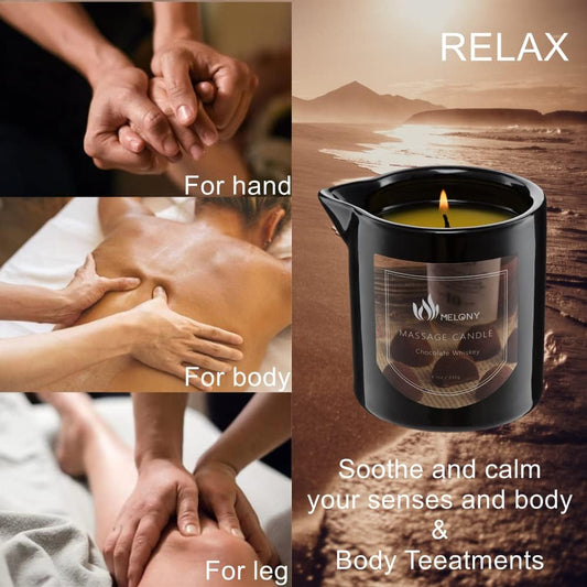 Moisturizing Body Oil Candle for Home Spa, Luxury Relaxing Gifts for Men, 8.1Oz (Chocolate Whiskey)