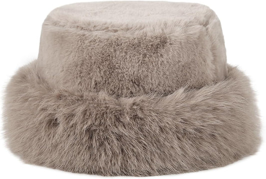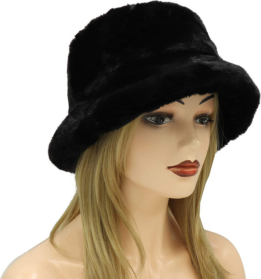 Winter Bucket Hat Fluffy Faux FurPlush Warm & Cute Fuzzy Bucket Hat for Women
